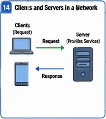 Every network has end devices, also called hosts. These include laptops, smartphones, desktop computers, and servers. Servers provide services such as websites, file storage, email, or video streaming. Clients use these services. Sometimes one device can act as both. For example, a laptop is a client when it opens a website, but it can act like a server when it shares a file with another device.