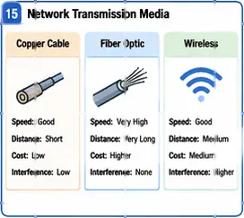 The type of media used affects how fast the network is, how far the signal can travel, how much interference it may face, and how much it costs.In practical ICT environments, data may travel over twisted-pair copper cables, fiber-optic cables, or wireless radio links.