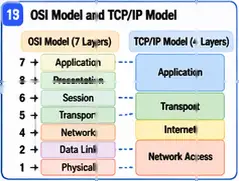 To understand how networks work, we use layered models. The OSI model has seven layers, and each layer has a different job in communication. Real networks more frequently employ the TCP/IP model. It has four layers: link (network access), internet, transport, and application. The layered design enhances networking flexibility, allowing for changes or improvements in one part without impacting the entire system.
